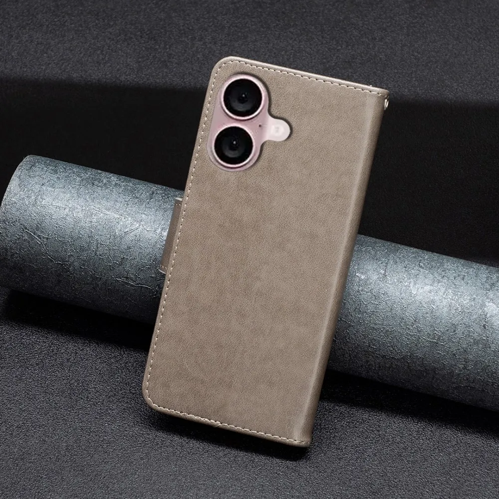 Pillangó könyvtáska iPhone 16-hoz - szürke