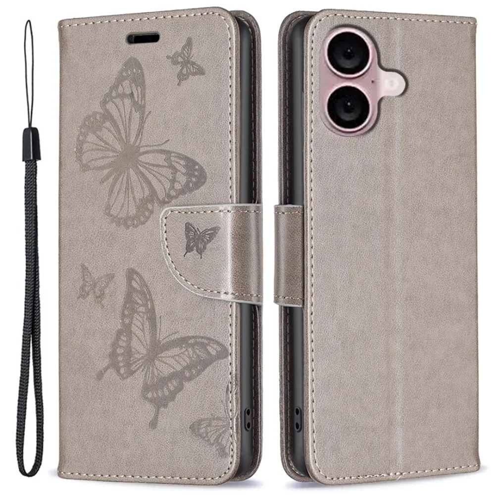 Szürke pénztárca tok Butterfly iPhone 16-hoz