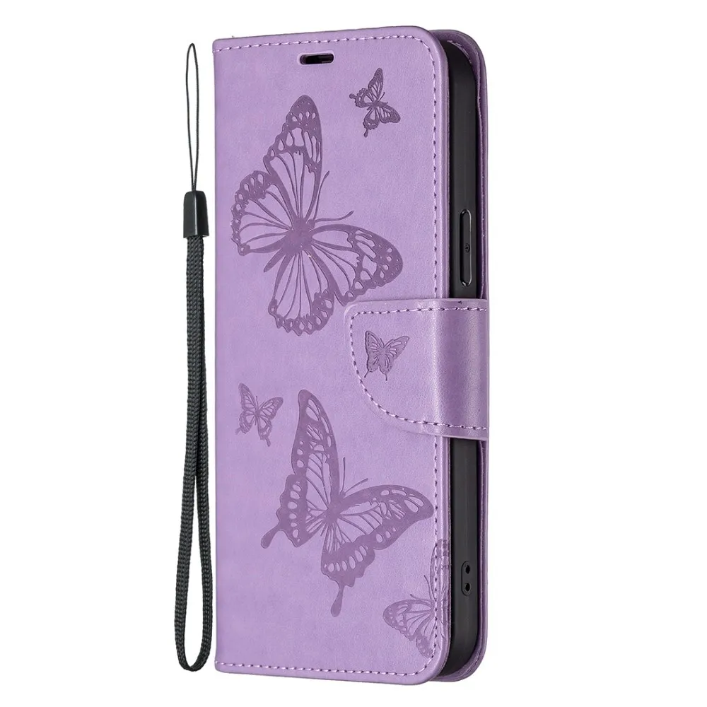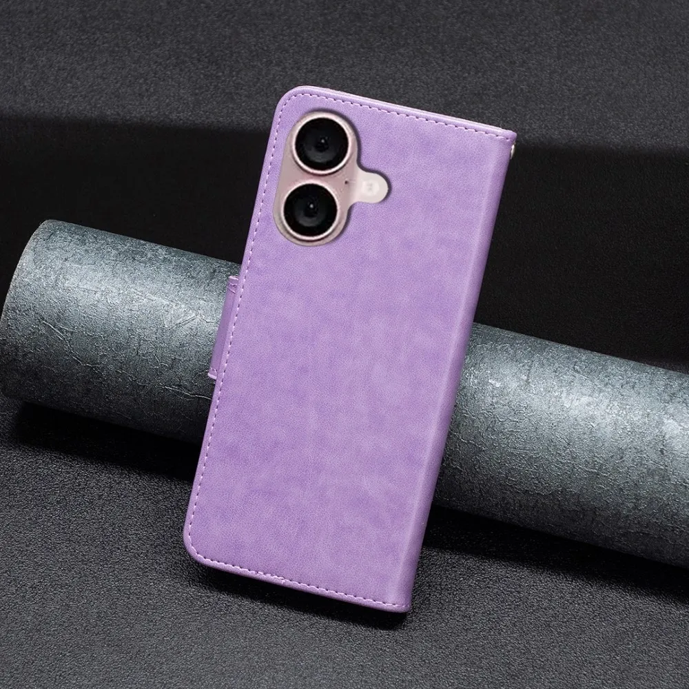 Világos lila pillangó pénztárca tok iPhone 16-hoz