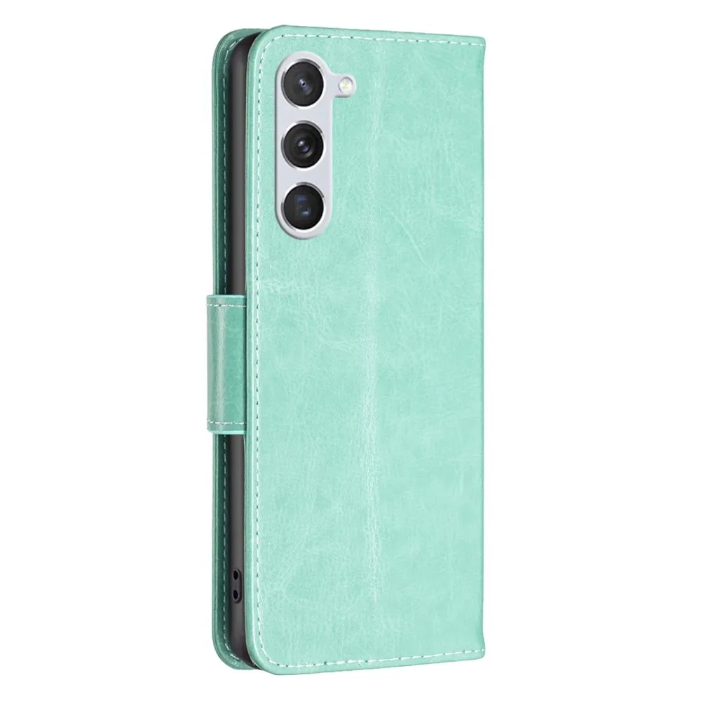 Kék-zöld pillangó pénztárca tok Samsung Galaxy S24-hez