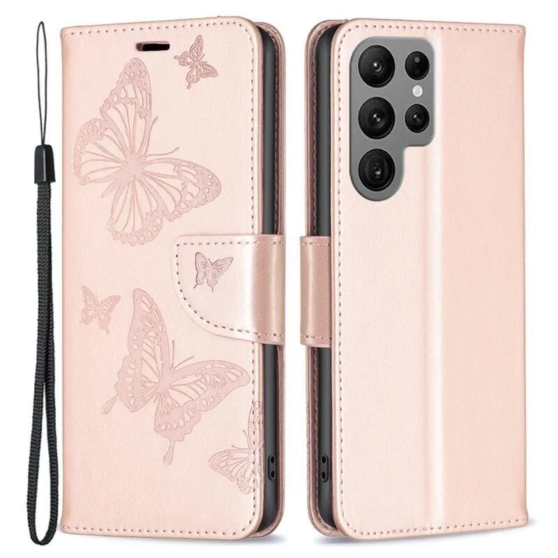 Pillangó rózsaarany könyv tok Samsung Galaxy S23 Ultra számára