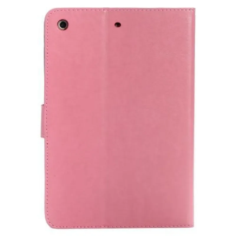 Pillangó PU bőr könyvtáska iPad mini, iPad mini 2, iPad mini 3 - rózsaszínű
