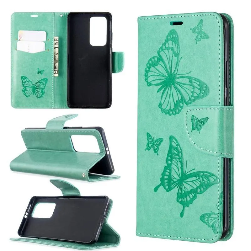 Pillangó PU bőr pénztárca tok a Huawei P40 Pro-hoz - zöld