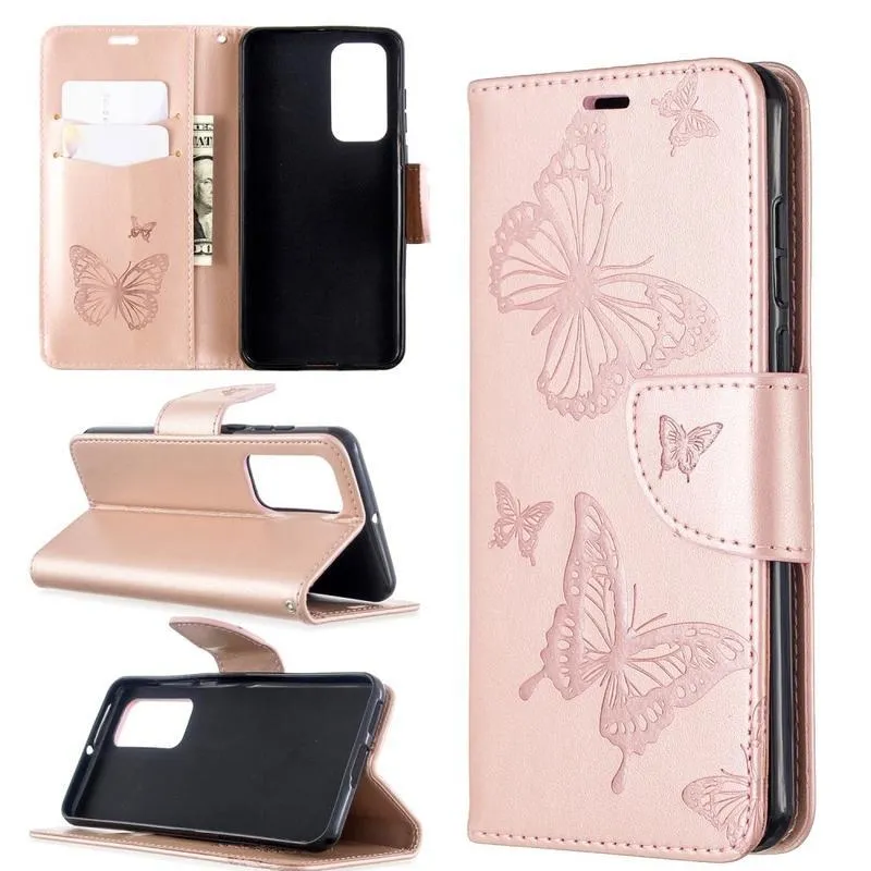 Pillangó PU bőr pénztárca tok Huawei P40 - rózsa arany