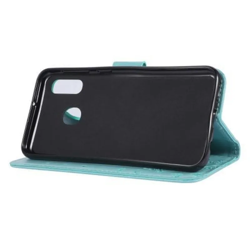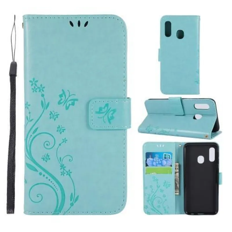 Pillangó PU bőr pénztárca tok Samsung Galaxy A20e - cián színű