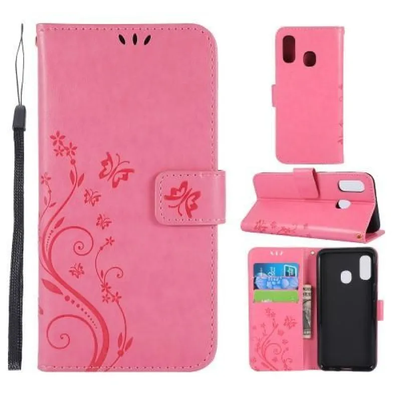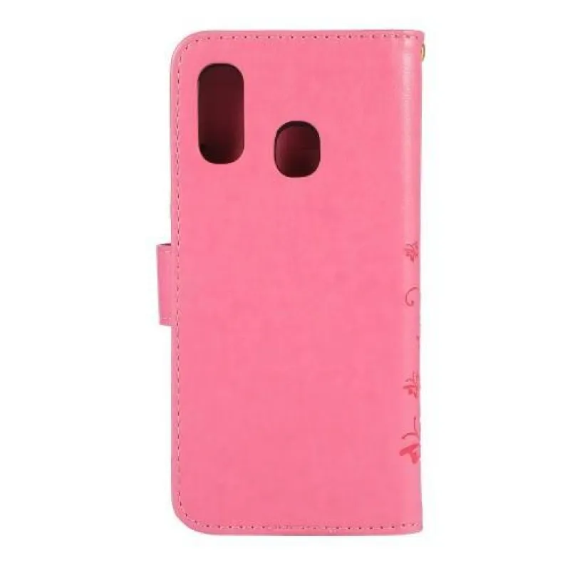 Pillangó PU bőr pénztárca tok Samsung Galaxy A20e - rózsaszínű