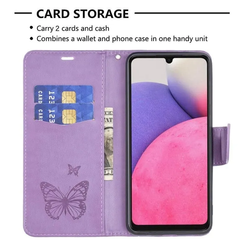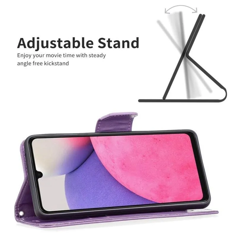 Pillangó PU bőr pénztárca tok Samsung Galaxy A33 5G-hez - lila