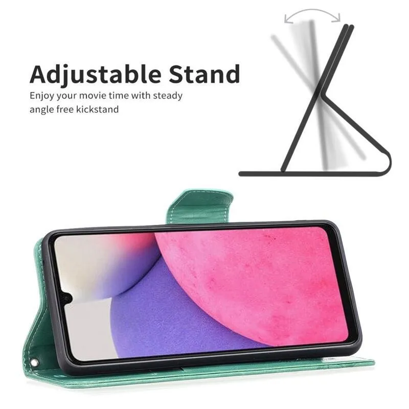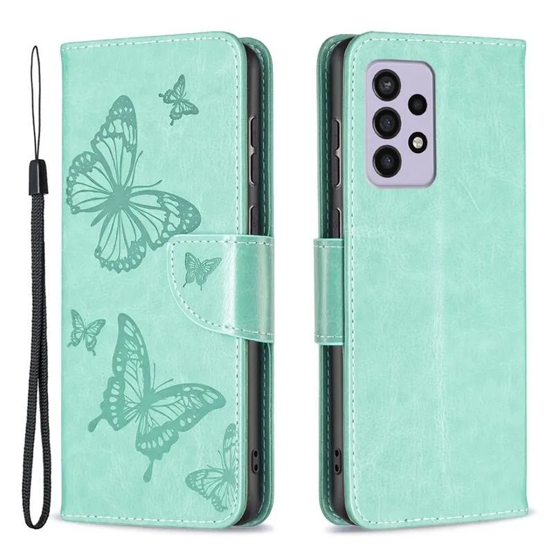 Pillangó PU bőr pénztárca tok Samsung Galaxy A33 5G-hez - zöld
