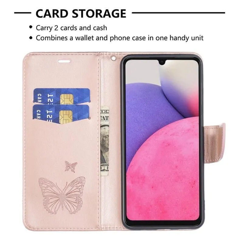 Pillangó PU bőr pénztárca tok Samsung Galaxy A33 5G - rózsaarany