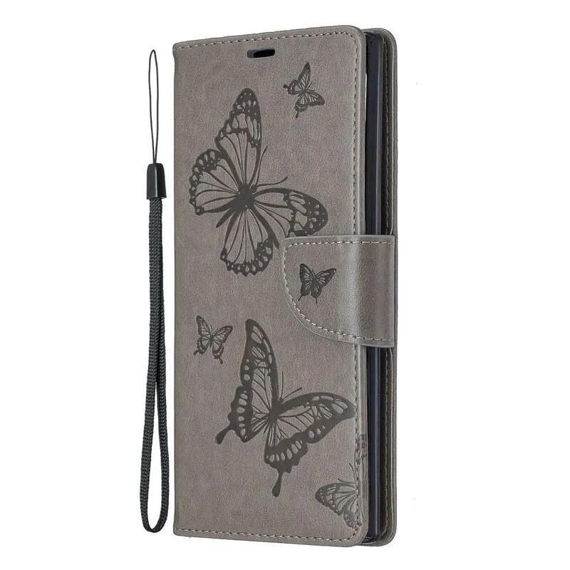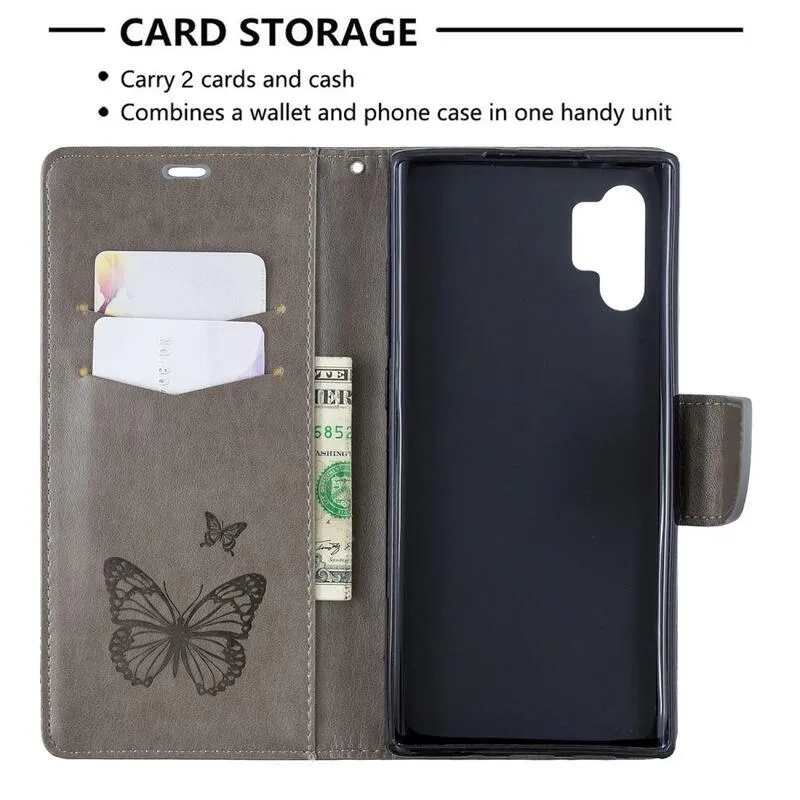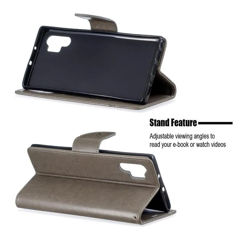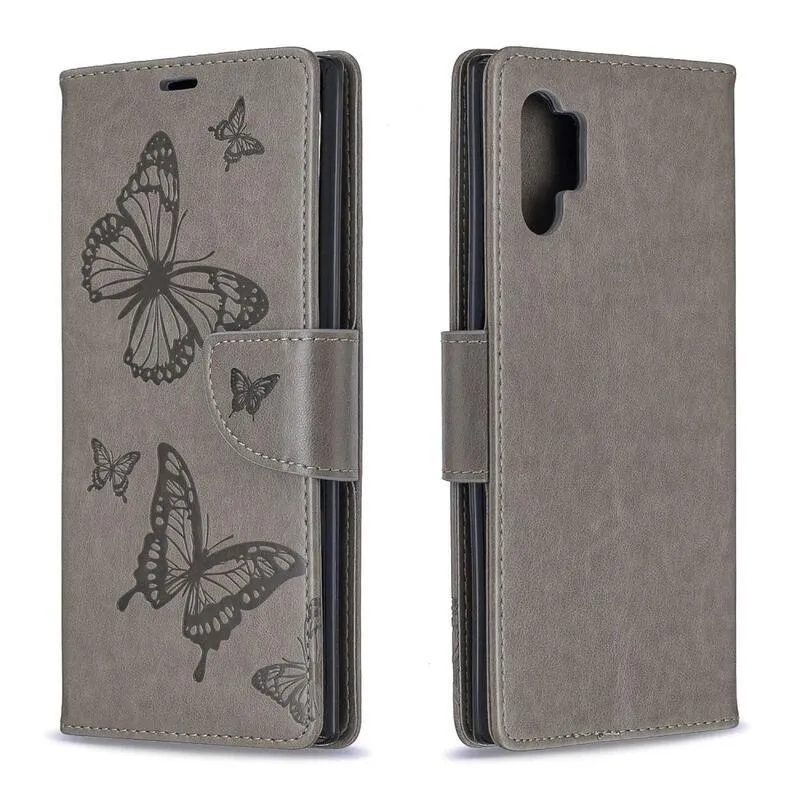 Pillangó PU bőr pénztárca tok Samsung Galaxy Note 10 Plus-hoz - szürke