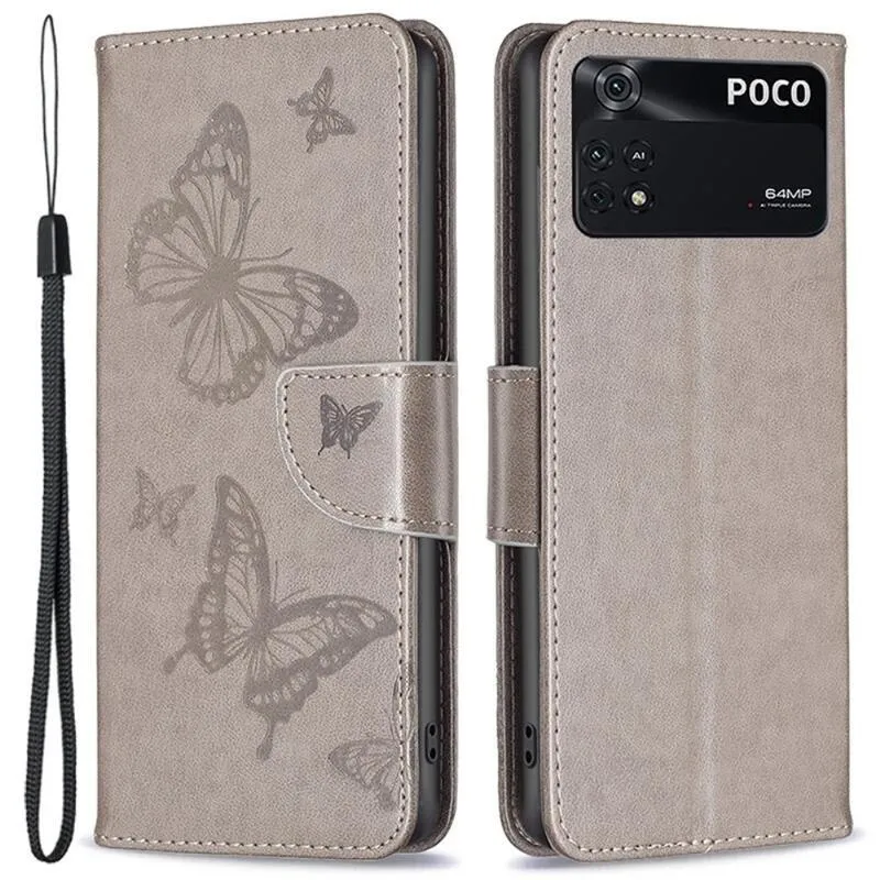 Pillangó szürke könyv tok a Xiaomi Poco M4 Pro 4G-hez