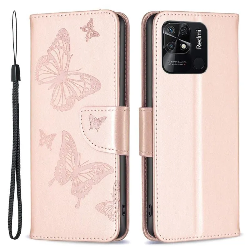 Pillangó PU bőr pénztárca tok Xiaomi Redmi 10C-hez - rózsa arany