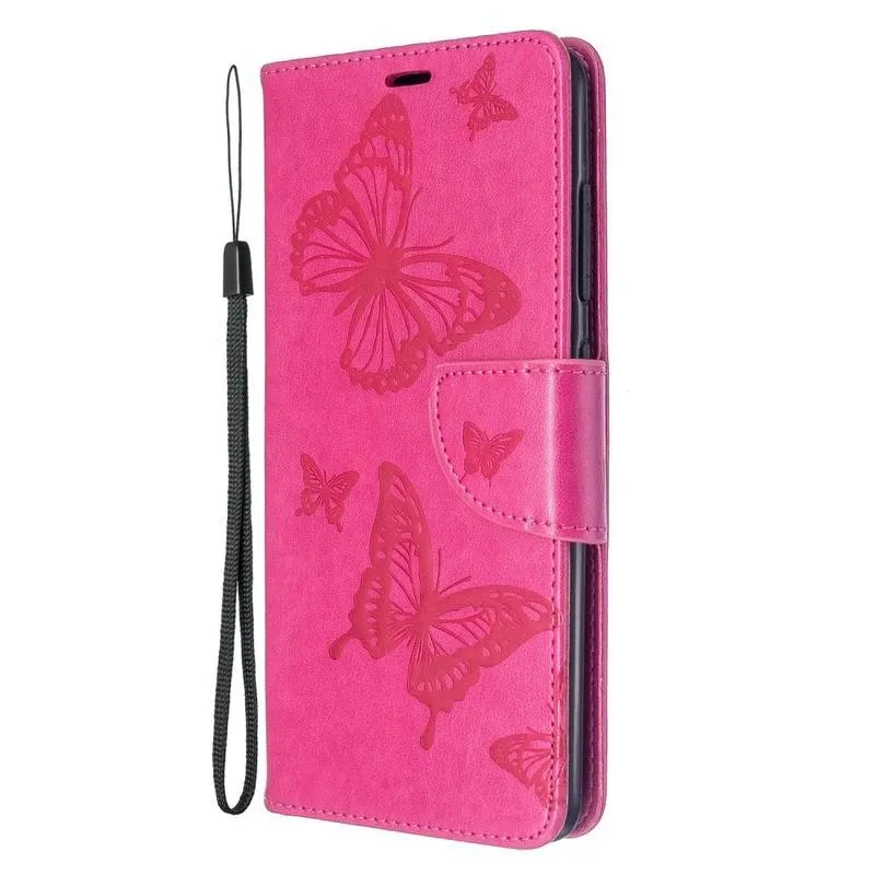 Pillangó PU bőr tok Samsung Galaxy A51 készülékhez - rózsaszínű
