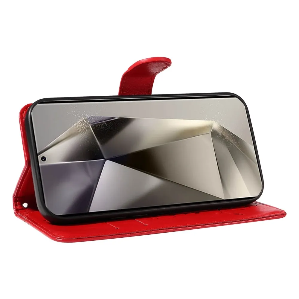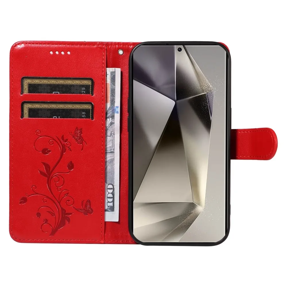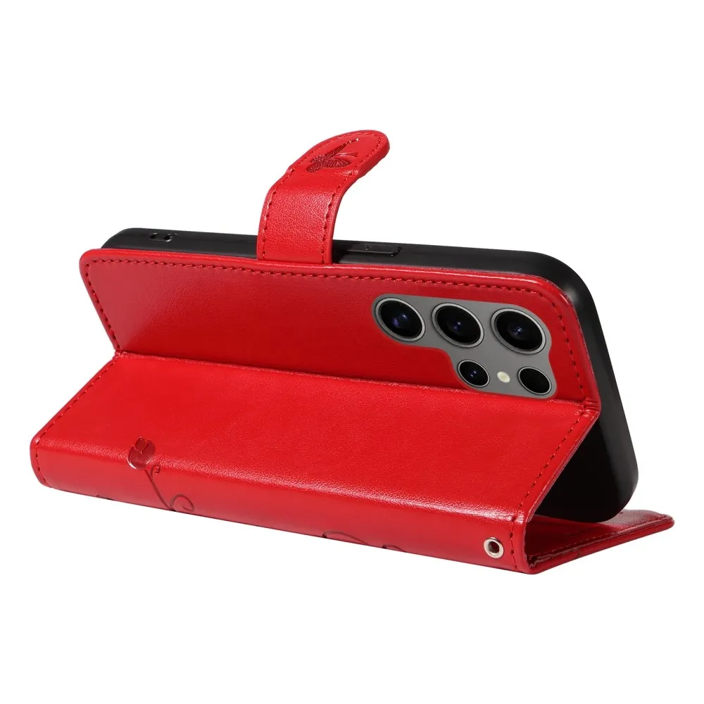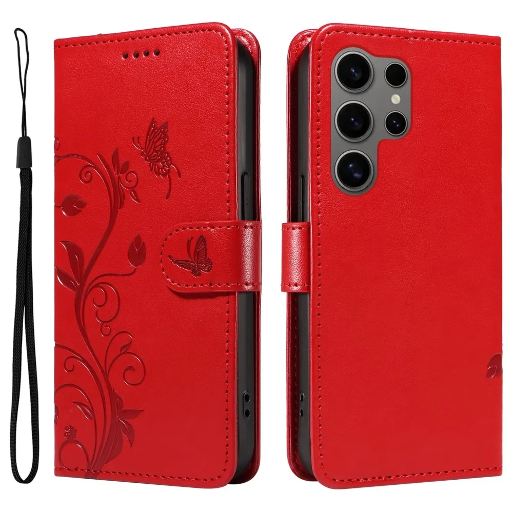 Piros pénztárca tok Pillangók Samsung Galaxy S25 Ultra számára