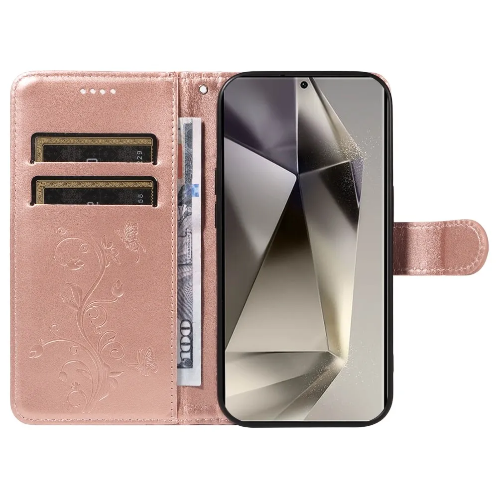 Rózsa arany pénztárca tok Pillangók Samsung Galaxy S25 Ultra számára