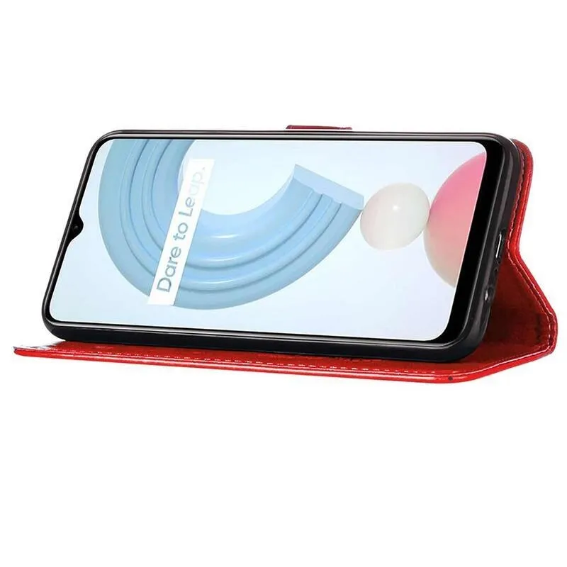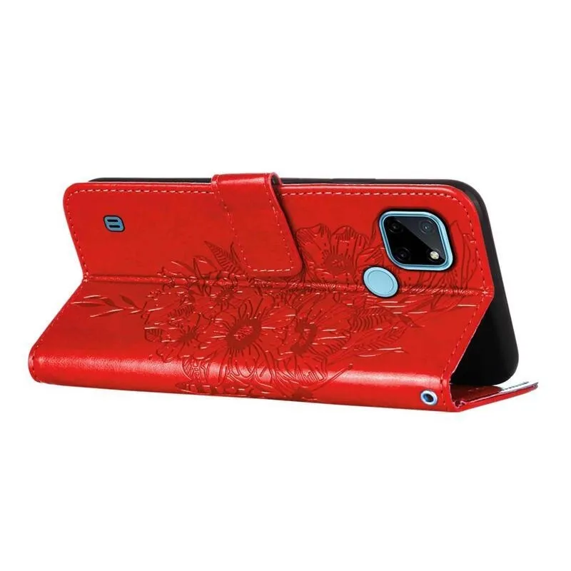 Pillangók PU bőr pénztárca tok mobiltelefonhoz Realme C21Y/C25Y - piros