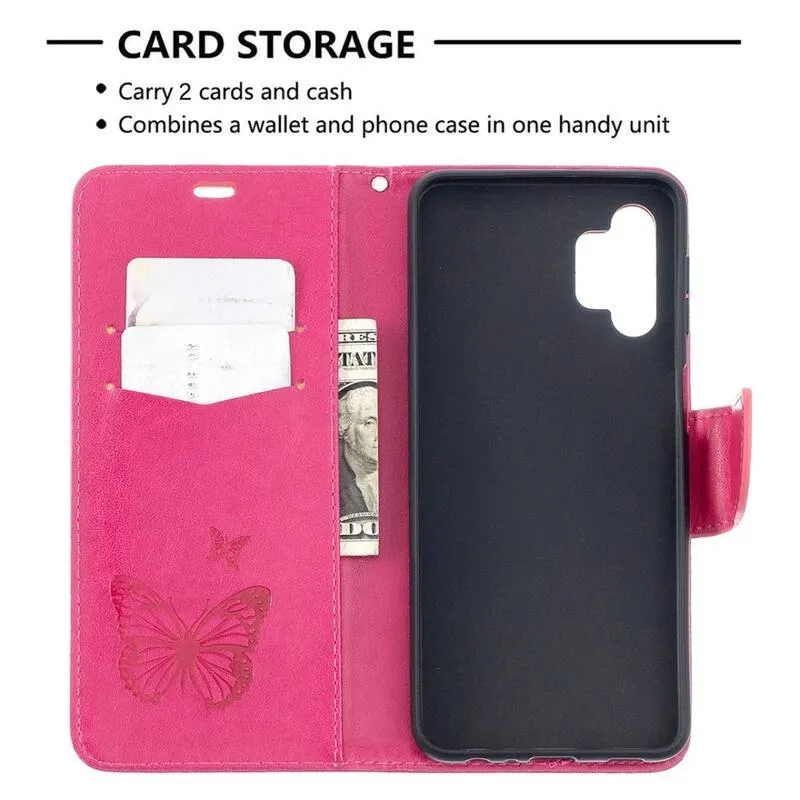 Pillangók PU bőr pénztárca tok Samsung Galaxy A32 5G - rózsaszínű
