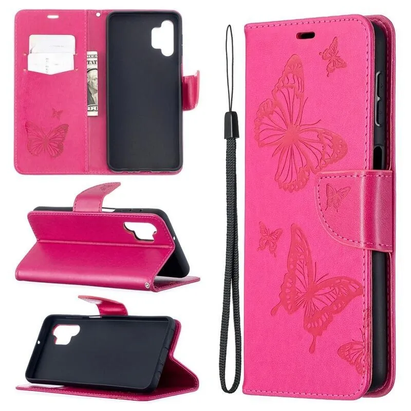 Rózsa könyv tok Pillangók Samsung Galaxy A32 5G számára