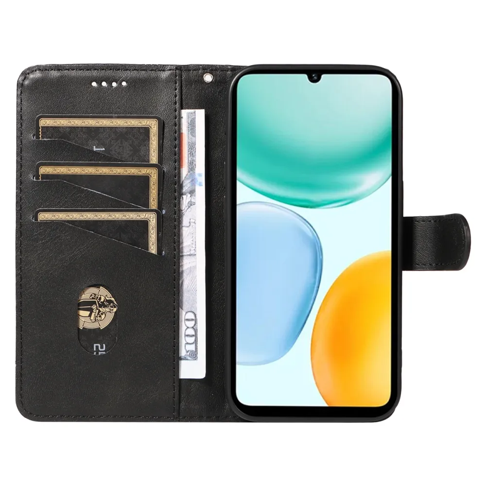 • ✅ Prémium műbőr matt TPU belső tokkal, ez a T alakú tok Honor X5c Plus készülékhez fekete színben
