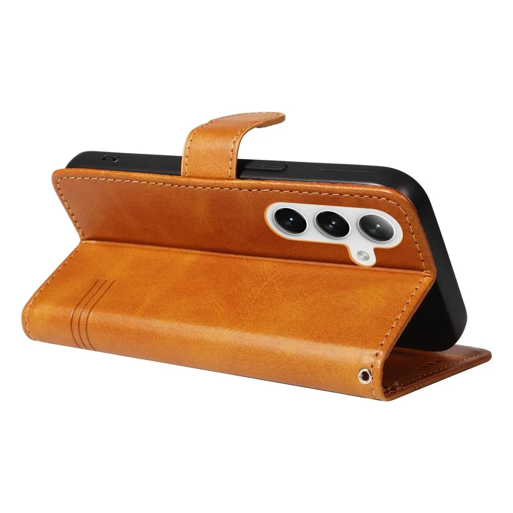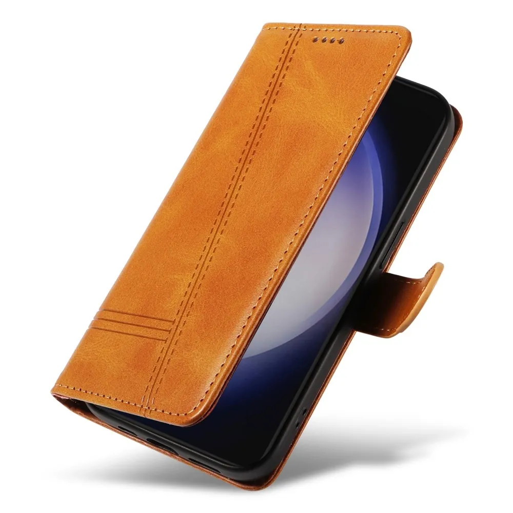 • ✅ Prémium műbőr matt TPU belső tokkal, ez a T-alakú könyvtok Samsung Galaxy S24+/S25+ készülékhez barna színben