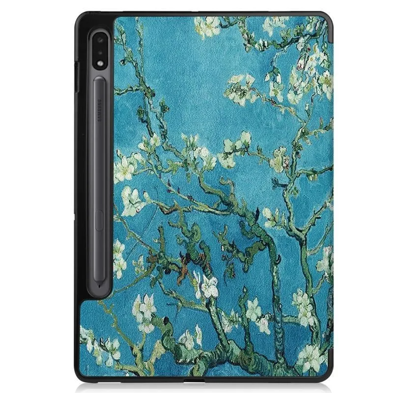 Könyvborító Printy tablethez Samsung Galaxy Tab S7, virágos fa motívummal, virágokkal