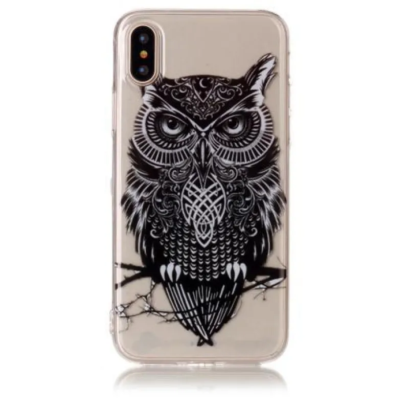 Szilikon borítás fekete bagoly motívummal iPhone X készülékhez