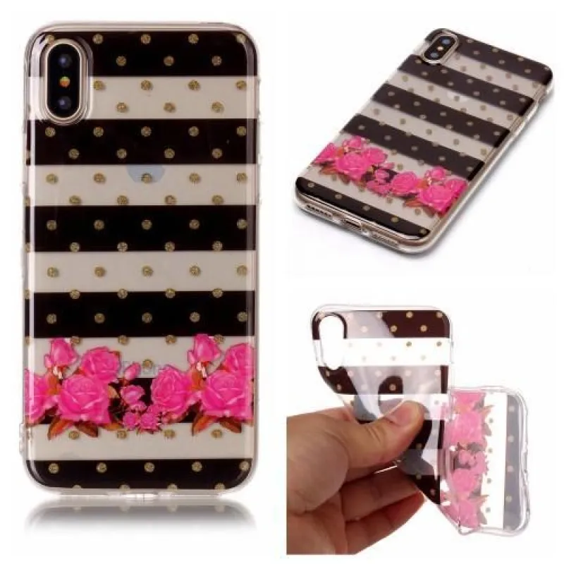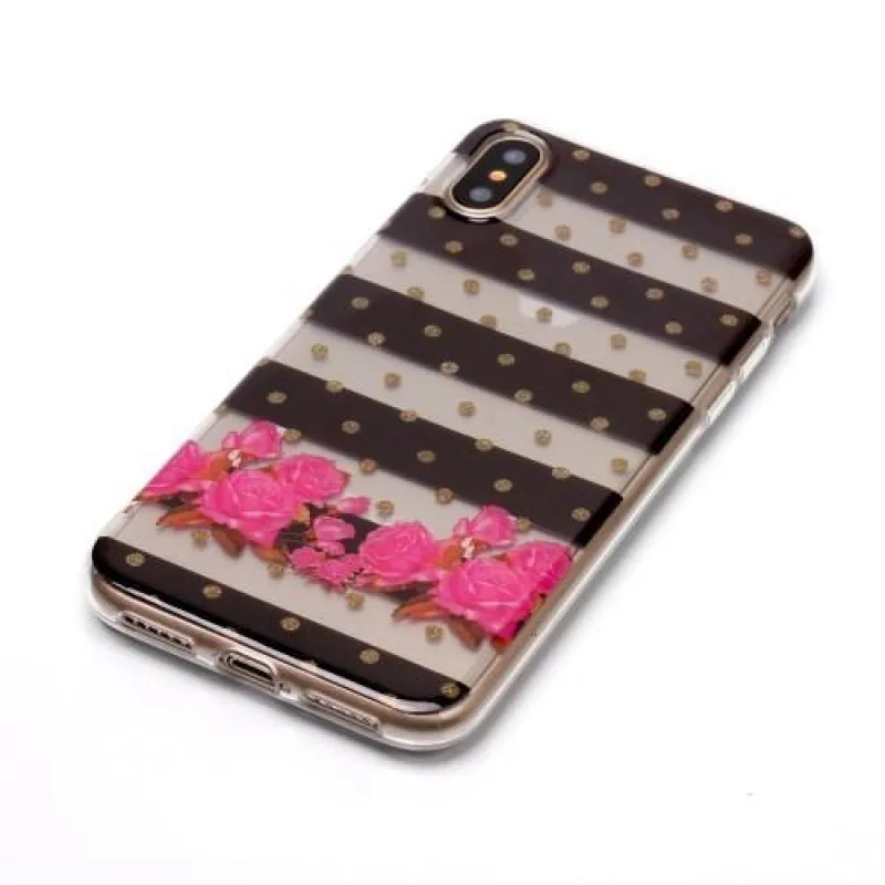Szilikon borítás fekete csíkokkal és rózsákkal iPhone X készülékhez