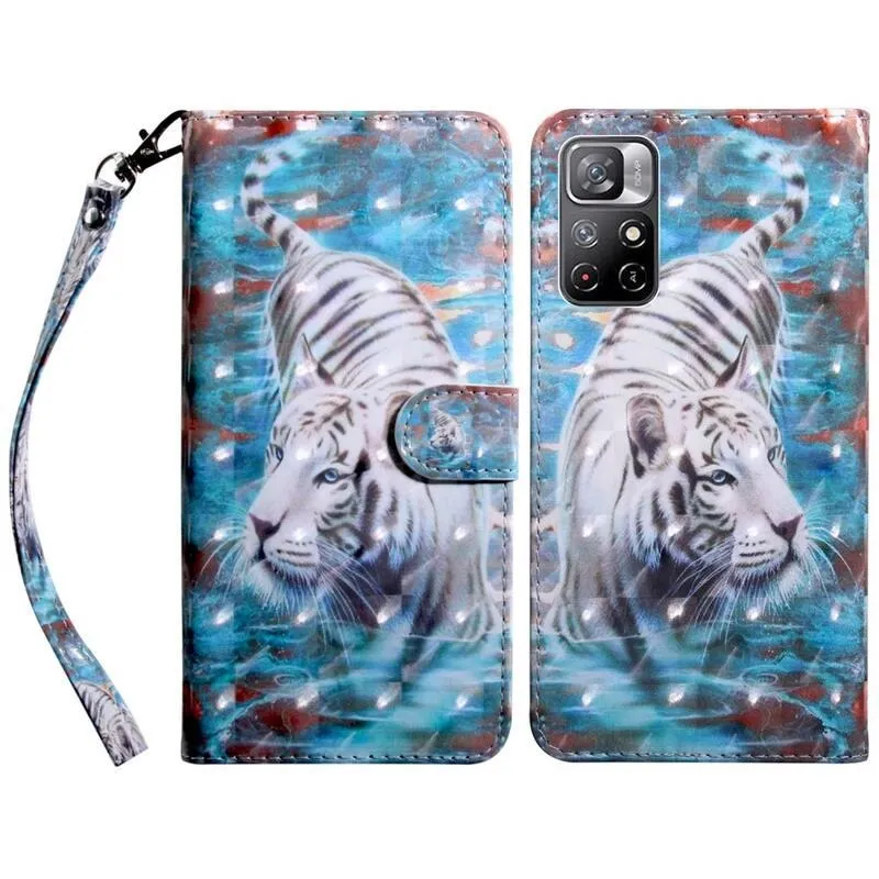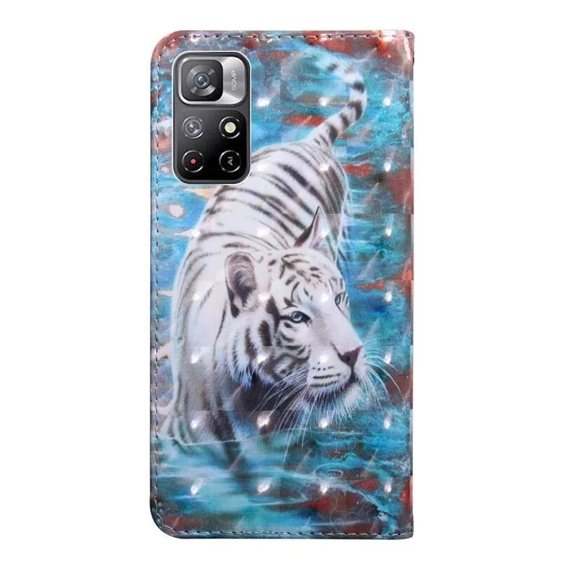 Könyvborító Nyomtatás a Xiaomi Poco M4 Pro 5G/Redmi Note 11S 5G számára fehér tigris motívummal