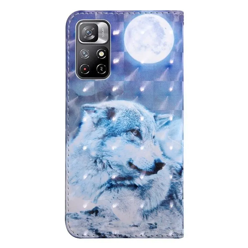 Könyvborító Nyomtatás a Xiaomi Poco M4 Pro 5G/Redmi Note 11S 5G számára sarki farkas motívummal