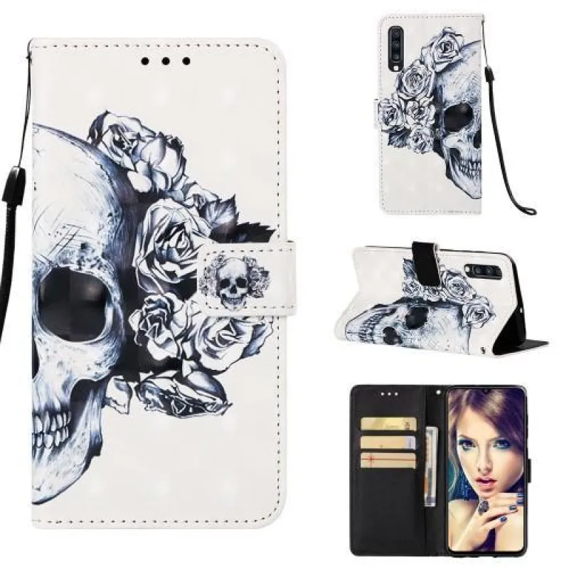 Printy PU bőr pénztárca tok Samsung Galaxy A70 készülékhez - koponya