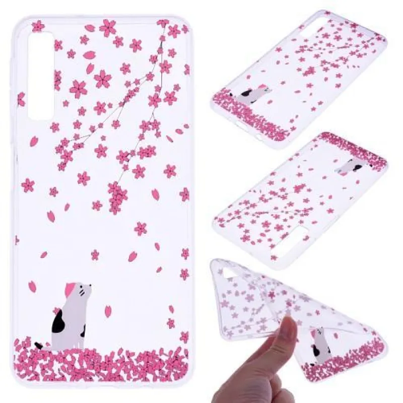 Zselés tok virágokkal és macskával Samsung Galaxy A7 ( 2018 )
