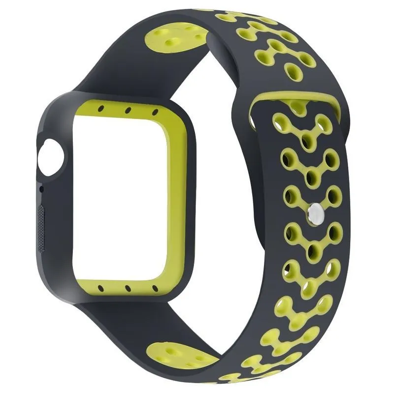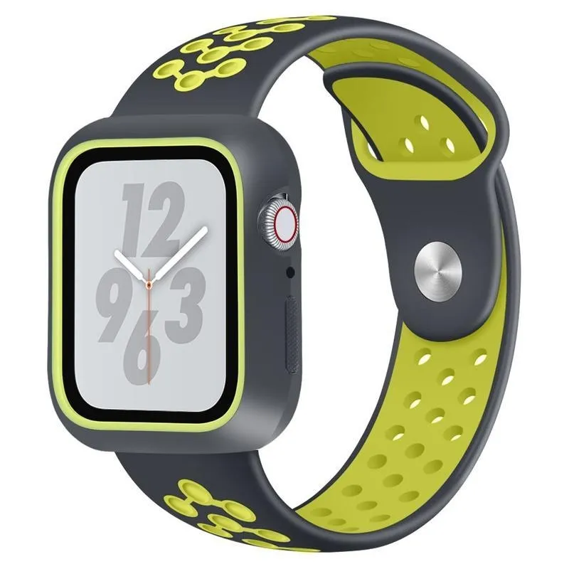 Puha, kéttónusú szilikon szíj Apple Watch 5/4 44mm-es órához - fekete/sárga