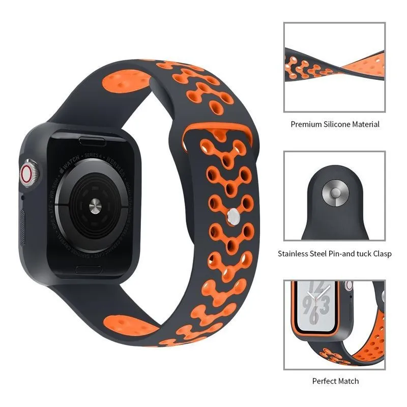 Puha, kéttónusú szilikon szíj Apple Watch 5/4 44mm órához - fekete/narancssárga
