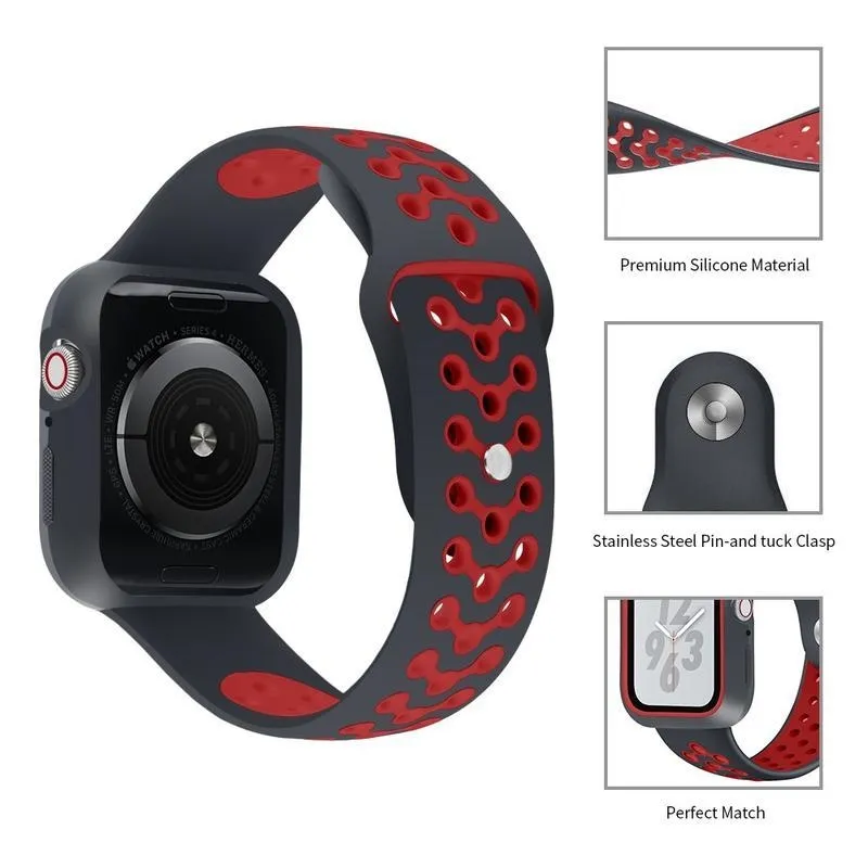 Puha, kéttónusú szilikon szíj Apple Watch 5/4 44mm órához - fekete/piros