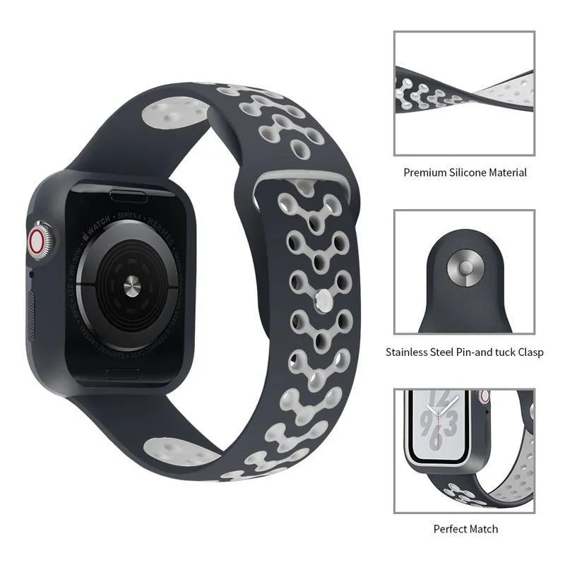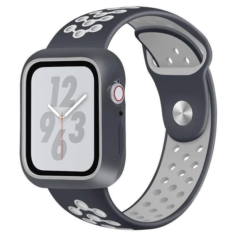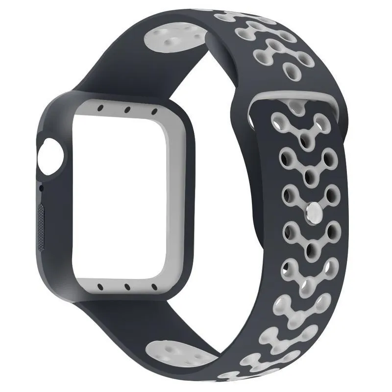 Puha, kéttónusú szilikon szíj Apple Watch 5/4 44mm órához - fekete/szürke