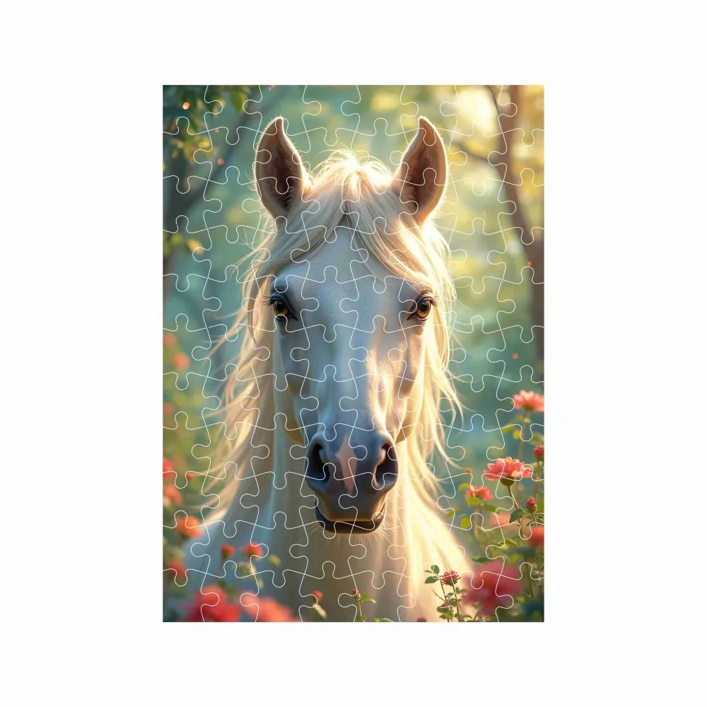 Originális A4 formátumú puzzle 29×20 cm méretben (120 darab) az alkotás örömét és egy színekben gazdag, pozitív energiával teli végeredményt kínál. Az összeállítás után megjelenik a vidám fehér ló virágok között motívum, amely feldob minden gyerekszobát, és sok örömet szerez a kirakás során. Ideális méretének és megfelelő darabszámának köszönhetően gyermekek és felnőttek számára is kiváló választás, akik szívesen pihennek kreatív tevékenység közben.
