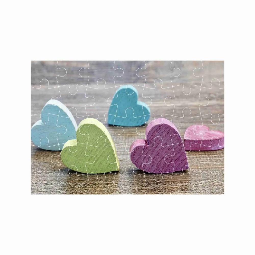 Az eredeti A4-es formátumú puzzle 29x20 cm (40 darab) a kreativitás és a kikapcsolódás tökéletes ötvözete. Összerakás után egy gyönyörű motívum, a fából készült szívek jelennek meg, amelyek melegséget és harmóniát sugároznak. Az ideális méret és a darabszám miatt gyerekeknek és felnőtteknek egyaránt kiváló választás, akik szeretnek alkotással pihenni.