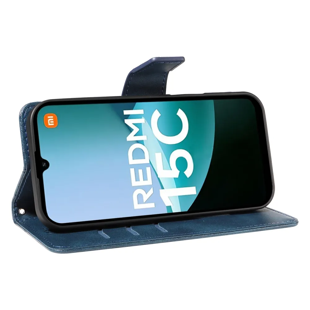 Kék pénztárca tok rácsok Xiaomi Redmi 15C 4G/5G (173mm)