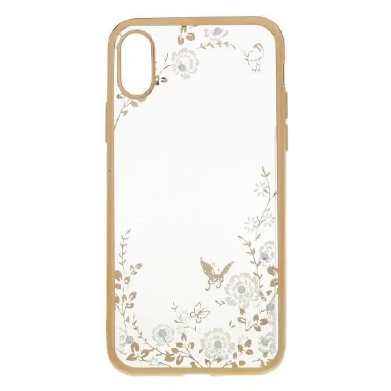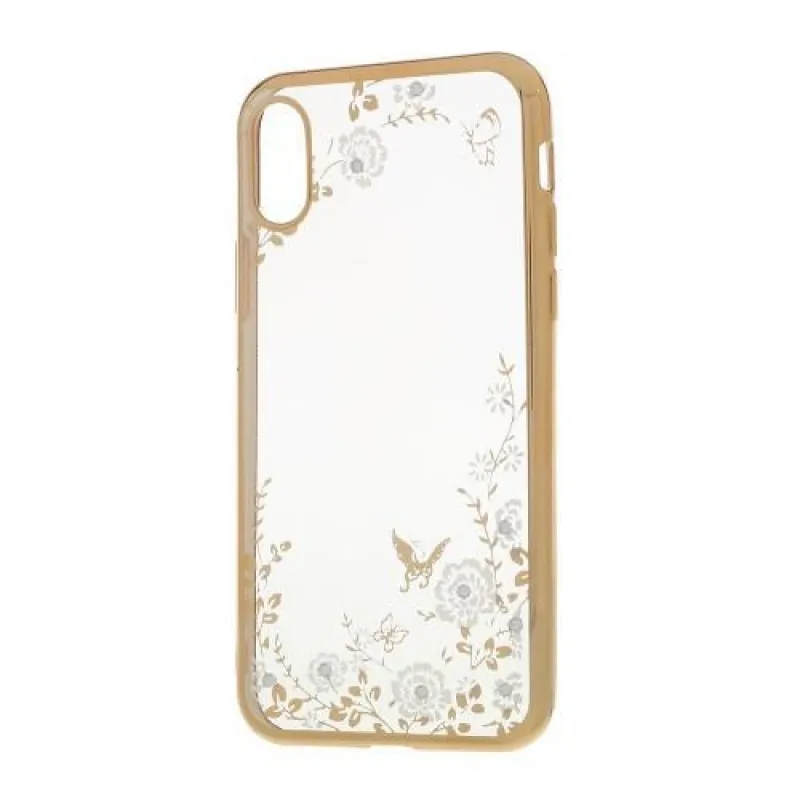Rajna díszített zselés tok iPhone X készülékhez - arany/fehér