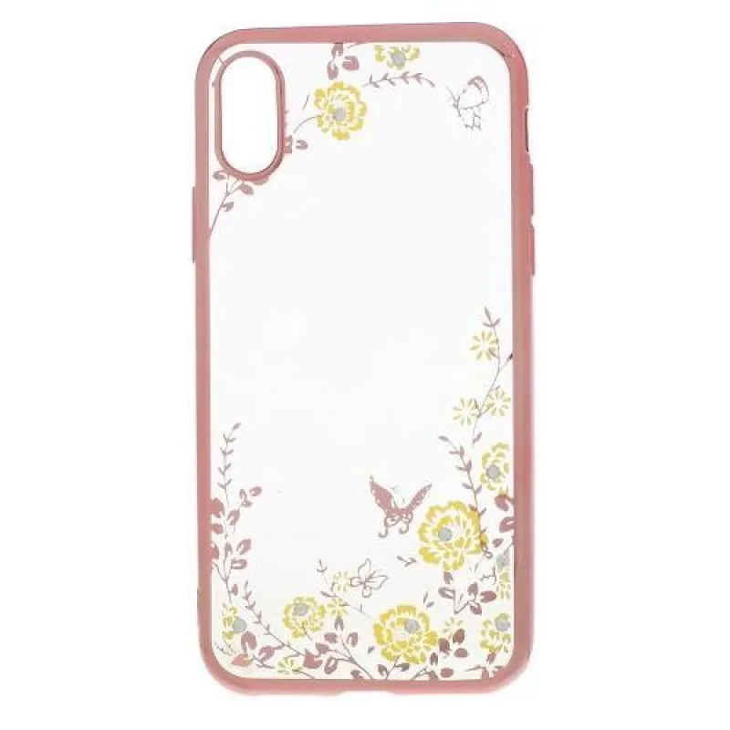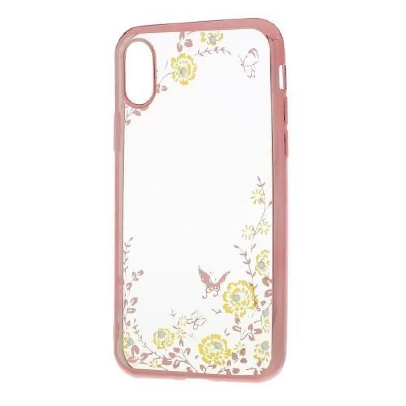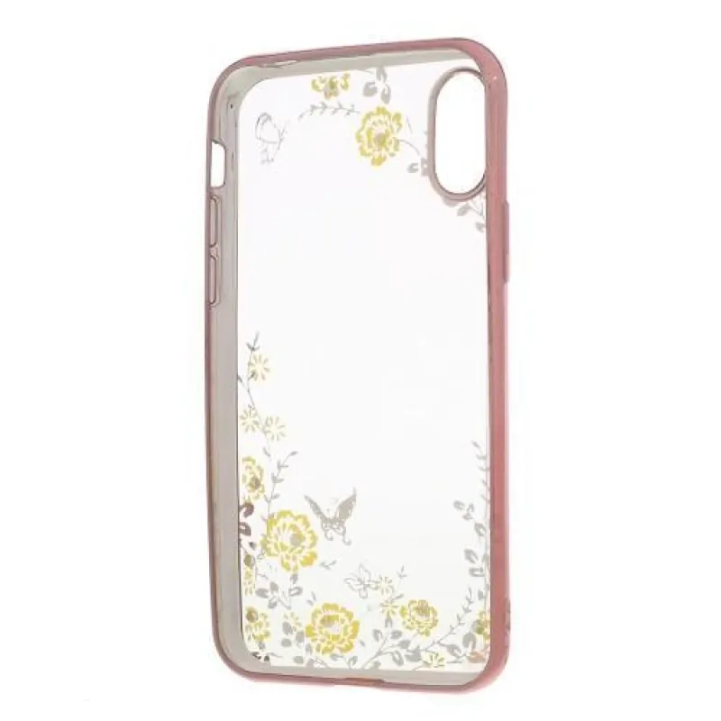 Rajna díszített zselés tok iPhone X készülékhez - rózsaarany/sárga
