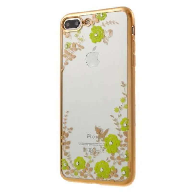 Rajna zselés tok kristályokkal iPhone 7 Plus és iPhone 8 Plus készülékhez - arany/sárga virágok