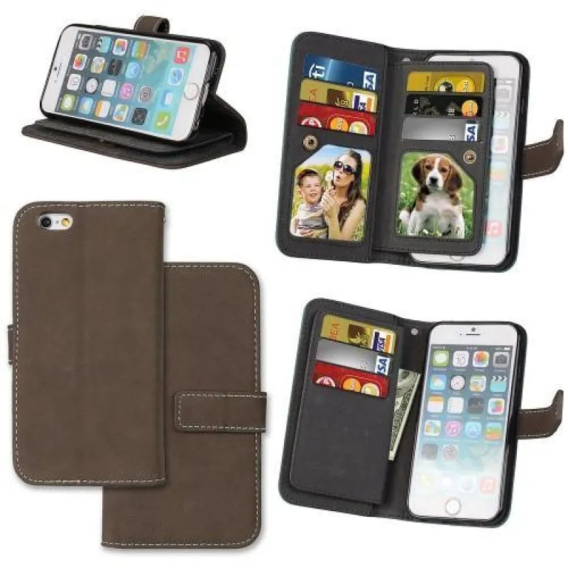 Réses PU bőr könyvtáska rekeszekkel iPhone 6 Plus és 6s Plus készülékhez - barna színben