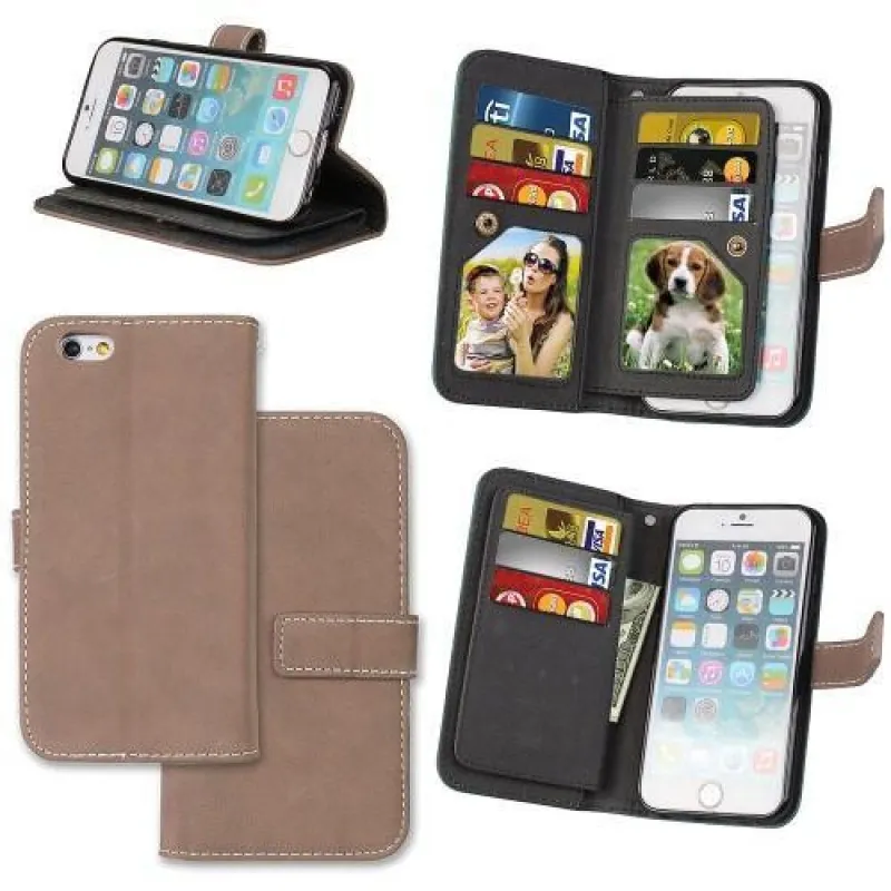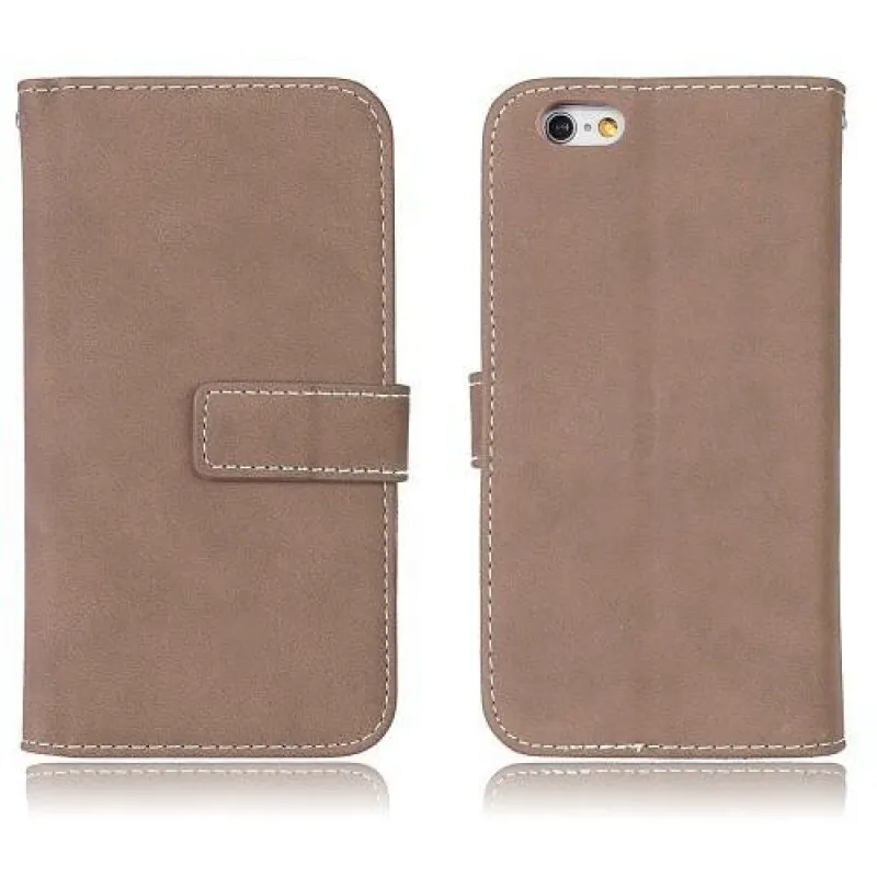Réses PU bőr könyvtáska rekeszekkel iPhone 6 Plus és 6s Plus készülékhez - bézs színű