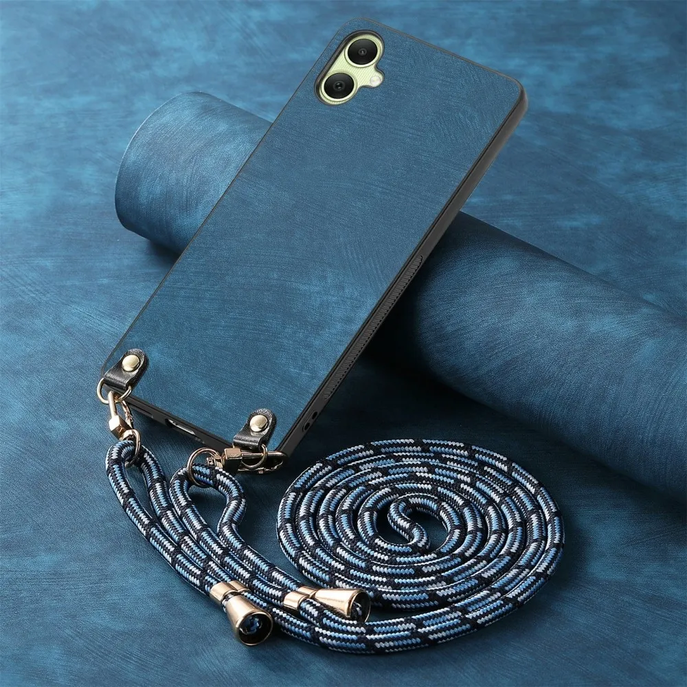 Retro zselés tok zsinórral és műbőrrel Samsung Galaxy A06 4G készülékhez - kék