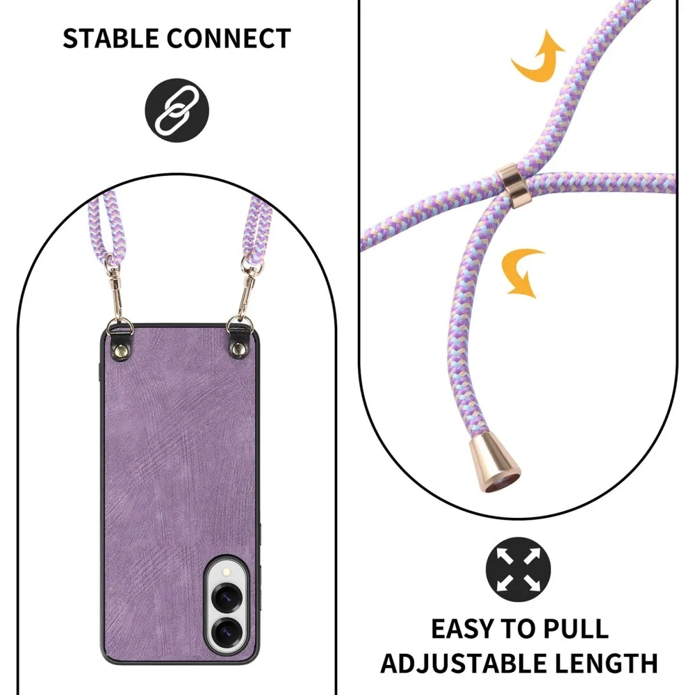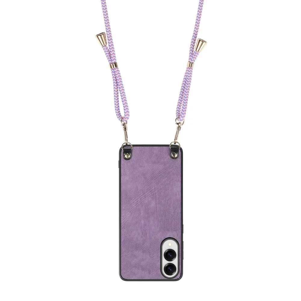 Retro lila zselés borító zsinórral és műbőrrel Samsung Galaxy S25 Edge készülékhez