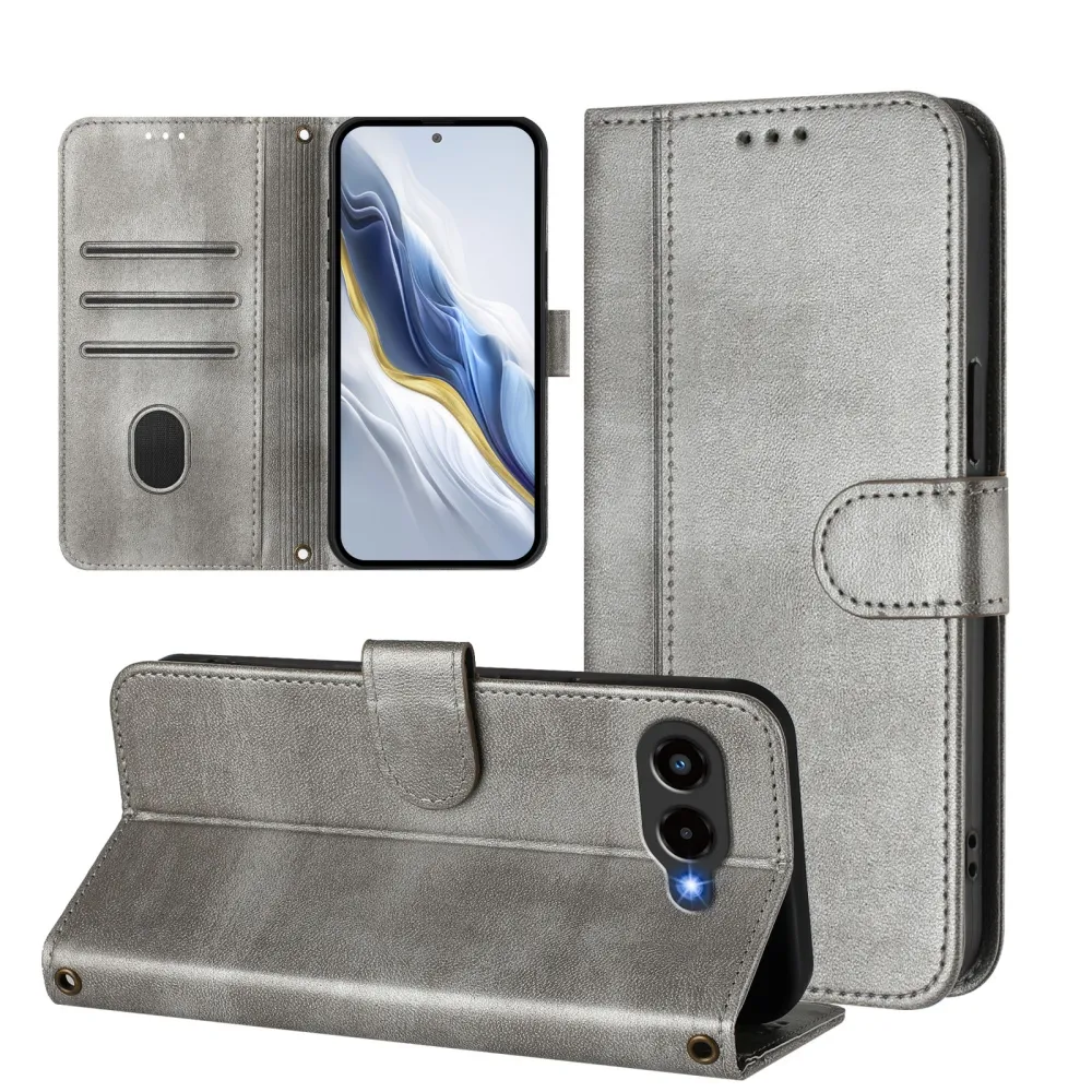 Szürke Retros pénztárca tok a Honor 400 Smart 5G/4G/Honor X7d számára