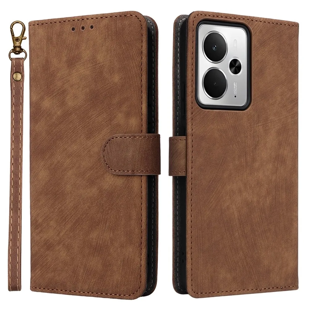 ✅【Prémium anyag】A Realme 14 5G/ 14T 5G készülékhez készült barna RFID könyvtok prémium PU bőr felülettel és TPU belső tokkal készült, így kényelmes tapintású és tartós