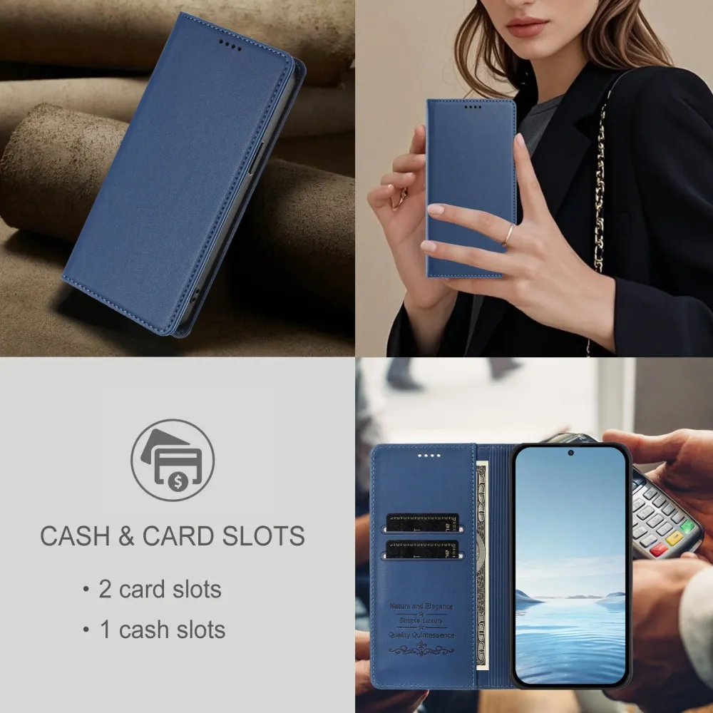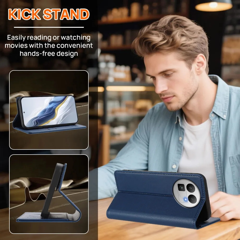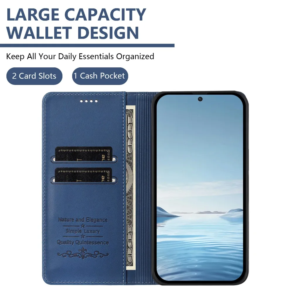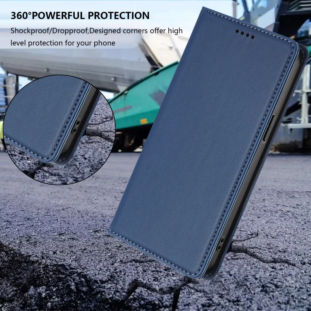 ✅【Mágneses záródás】Ez a sötétkék RFID pénztárca tok Realme GT 8 Pro 5G készülékhez erős mágnessel van felszerelve, amely szorosan zárva tartja a tokot, így könnyű egykezes hozzáférést és megbízható mindennapi védelmet nyújt.