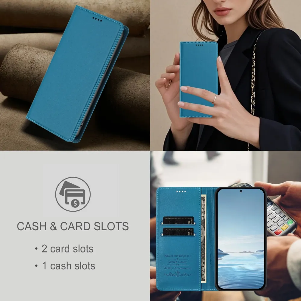 ✅【Mágneses záródás】Ez a világoskék RFID pénztárca tok Realme GT 8 Pro 5G készülékhez erős mágnessel van felszerelve, amely szorosan zárva tartja a tokot, így könnyű egykezes hozzáférést és megbízható mindennapi védelmet nyújt.