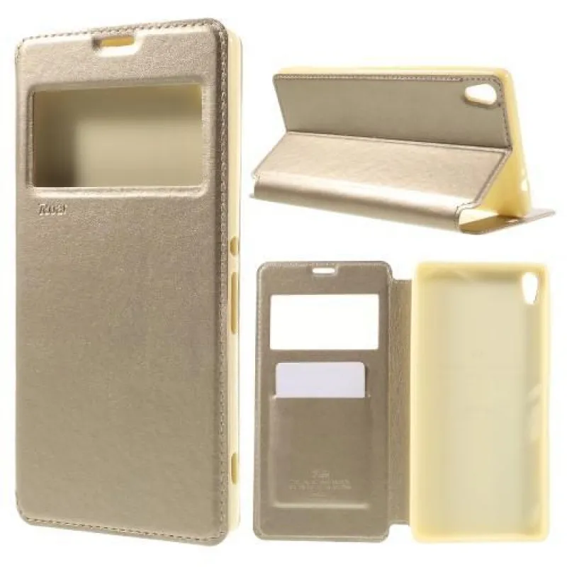 Richi PU bőr tok ablakkal a Sony Xperia XA Ultra készülékhez - arany színben